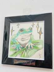 ペン画に日本画の画材(金泥)を使用していますので眼光や背景の植物がキラキラと輝きます