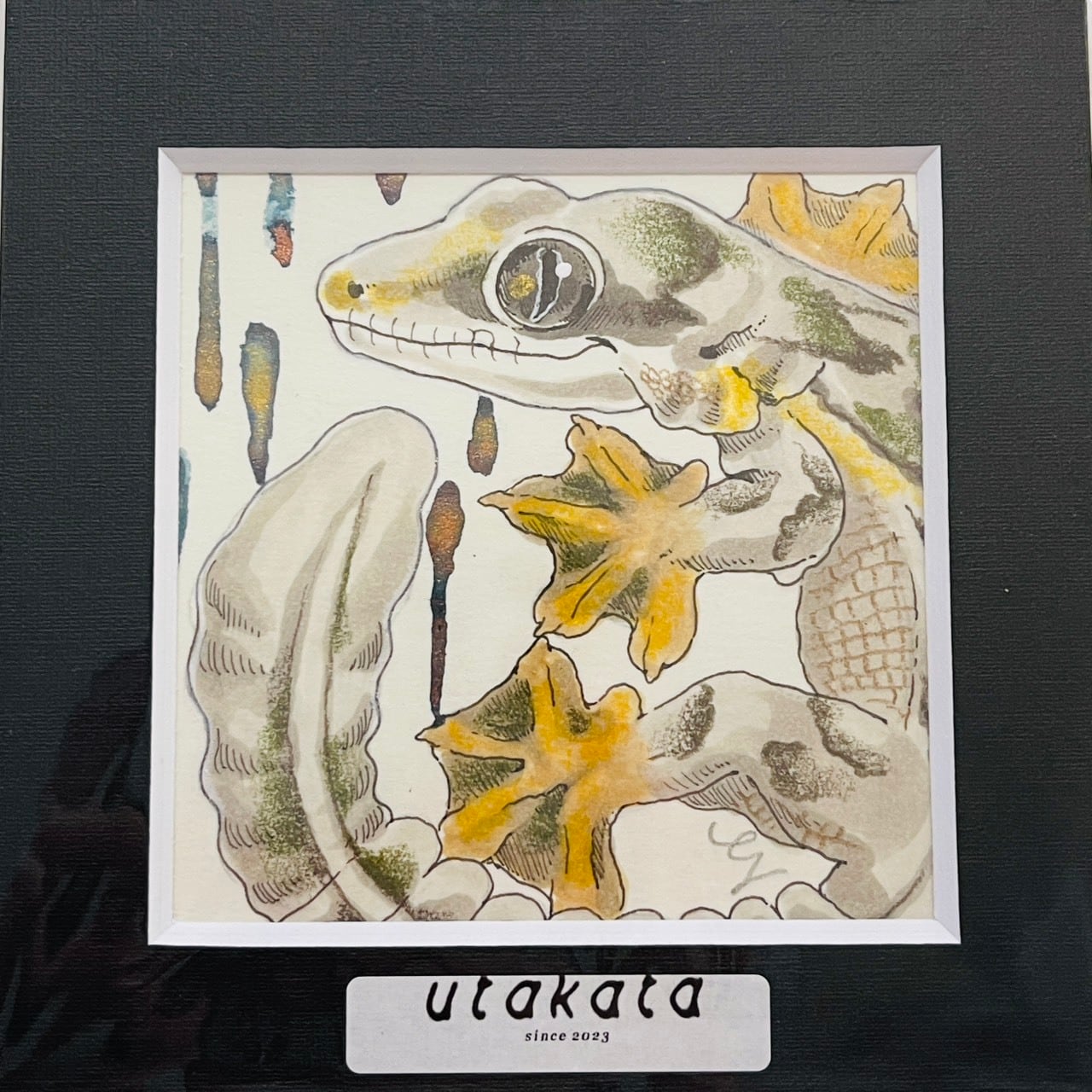 ペン画に日本画の画材(金泥)を使用していますので眼光や背景の植物がキラキラと輝きます